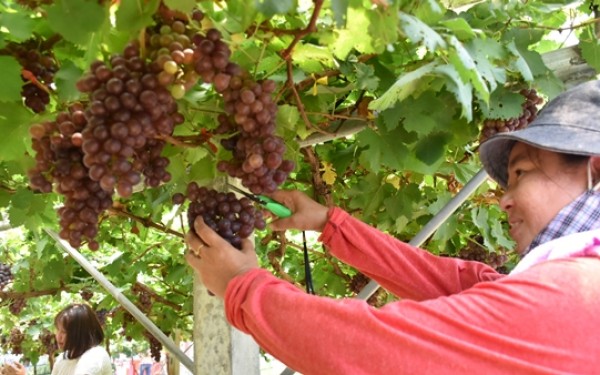 หลังเรียนรู้วิธีปลูกและการดูแลองุ่นมาจากโครงการหลวง จังหวัดเชียงใหม่ พบว่าองุ่นน่าจะให้ผลผลิตที่ดี จึงทดลองปลูกองุ่น พันธ์แบล็คโอปอ , พันธ์รูทเพอเรท ,และพันธุ์บิวตี้ซีดเลส ในพื้นที่ 1 ไร่ โดยผ่านมา 4 ปีแล้ว ก็ให้ผลผลิตดีตามที่คาดไว้ โดยครั้งนี้คาดว่าจะได้ผลผลิตไม่ต่ำกว่า 2 ตัน ซึ่งปกติตามห้างร้านจะมารับซื้อไปขายต่อ แต่เนื่องจากช่วงนี้ มีเชื้อไวรัสโคโรน่า โควิค 19 ระบาดอยู่ ตามห้างสรรพสินค้าก็ปิด ผู้คนส่วนใหญ่อยู่กับบ้าน ตนจึงใช้วิกฤตินี้โพสลงโซเซี่ยวทาง facebook ให้คนมาเที่ยวสวนเพื่อผ่อนคลายโดยไม่ต้องเดินทางข้ามจังหวัด พร้อมทั้งเปิดขายให้คนที่มาเที่ยว และโพสขายลงในโซเซี่ยวด้วย จึงทำให้สามารถขายได้อย่างดี