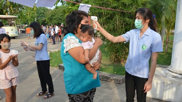 ผู้สื่อข่าวรายงานเพิ่มว่า การเข้าแถวเพื่อจะเข้ารับอาหารข้าวกล่อง และเครื่องดื่มนั้นจะเห็นได้ว่ามีเจ้าหน้าที่จัดระเบียบในการเว้นระยะห่าง มีการวัดอุณภูมิไข้และมี แอลกอฮอล์ล้างมือ การเข้าแถวให้เป็นระเบียบ และชี้แจงให้ประชาชนใส่หน้ากากอนามัย เพื่อป้องกันการแพร่ระบาดไวรัสโควิด-19 ด้วย