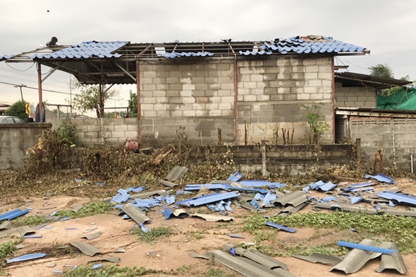 ขณะที่ลมพัดหลังคาปลิวลอยไป มีฝนตกลงมาด้วย ทำให้ข้าวของเครื่องใช้ไฟฟ้าเก็บไม่ทันเปียกฝนทั้งหมด น.ส.รำยง ยะวงศ์ อยู่บ้านเลขที่ 198 หมู่ที่ 11 ต.ท่าขุนราม อ.เมือง จ.กำแพงเพชร เล่าให้ฟังว่า ขณะเกิดเหตุมีลมพายุแรงมาก มีทั้งน้ำฝน และฟ้าผ่า ก็ได้หลบฝนอยู่ข้างล่างซักพักมีน้ำรั่วมาจากบนบ้านจึงมองขึ้นไปพบว่าหลังคาบ้านได้หายไปแล้ว ซึ่งขณะนั้นก็ทำอะไรไม่ถูกแล้ว กลัวก็กลัว ทำให้เครื่องใช้บนบ้านเปียกน้ำจนหมด