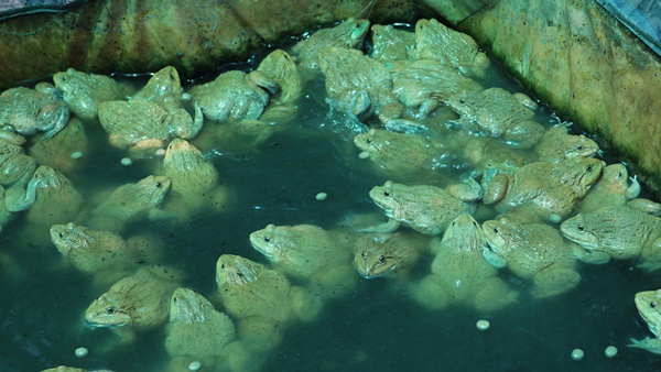 โดยปกติช่วงเดือนเมษายน พฤษภาคม จะเป็นช่วงที่ขายดีมาก ราคาขายกบจะอยู่ที่กิโลกรัมละ 100-150 บาท ลูกกบ 2-5 บาท ภายหลังจากการระบาดของโรคไวรัสโคโรน่า 2019 (Covid-19) ทำให้มีรายได้ลดลงอย่างมาก ขายได้วันละไม่ถึง 5 กิโลกรัม สาเหตุส่วนหนึ่งเนื่องจากไม่มีพ่อค้ามาซื้อ การค้าการขายหยุดชะงัก การขนส่งยากลำบาก ไม่มีแหล่งจำหน่าย จึงทำให้ต้องปรับเปลี่ยนวิธีการขาย นำมาขายปลีกหน้าฟาร์ม โดยลดราคาขายลงเหลือกิโลกรัมละ 100 บาท ซึ่งเป็นกบที่มีขนาดลำตัวประมาณ 300-400 กรัม เพื่อประคองไปก่อน อีกทั้งค่าอาหารก็แพง ซึ่งเชื่อว่าหลังมาตรการผ่อนปรน สถานการณ์การจำหน่ายตลาดการค้าการขายจะดีขึ้น หากพ่อค้าหรือประชาชนต้องการลูกกบหรือกบตัวเต็มวัยก็สามารถโทรมาสั่งจองได้ทางหมายเลขโทรศัพท์ 0806890801