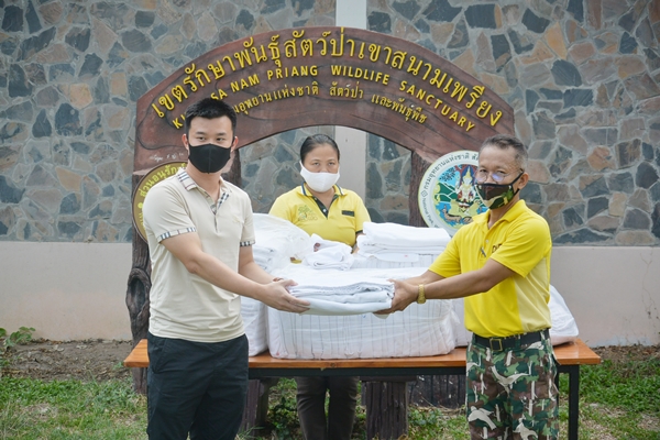 โดยนายวิโรจน์ สุขาภิวัฒน์ กรรมการผู้จัดการบริษัท ฟลอส์ ลอนดรี้ จำกัด ได้เป็นผู้แทนเจ้าของผ้าขนหนูและของใช้ เดินทางมาส่งมอบให้กับเจ้าหน้าที่ที่ปฎิบัติงานอยู่ในป่า ด้วยตนเอง เพื่อได้เห็นข้อเท็จจริงในสภาพการทำงานและเห็นความเป็นอยู่ เพื่อจะนำไปวางแผนจัดทำเป็นโครงการสนับสนุนเจ้าหน้าที่พิทักษ์ป่าผู้ปฎิบัติงานที่อื่นของประเทศไทยเพิ่มเติมต่อไป