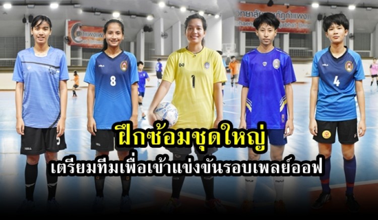 ที่สนามฟุตซอล ภายในมหาวิทยาลัยราชภัฏกำแพงเพชร รศ.ดร.ปรีชา ปัญญา หัวหน้าผู้ฝึกสอนสโมสรฟุตซอลหญิงมหาวิทยาลัยราชภัฏกำแพงเพชร ได้พานักกีฬาฟุตซอลสโมสรฟุตซอลหญิงมหาวิทยาลัยราชภัฏกำแพงเพชร นำโดย ณัฐมน อาจกล้า, เกศรินทร์ ชนะภู และธนพร จันทร์แจ้ง ลงสนามทำการฝึกซ้อมเพื่อเตรียมทีมแข่งขันรอบเพลย์ออฟพบกับอุทัยธานี