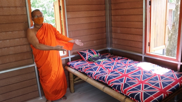 นอกจากนี้อาตมา จะมอบอาหารเช้าและอาหารเพลที่ได้ไปบิณฑบาตมาแก่ญาติโยมที่มากักตัวด้วย ซึ่งเดิมที่สถานที่กักตัวของสาธารณสุขในพื้นที่ยังใช้อาคารหลังเก่าของเทศบาลระหาน ซึ่งก็ใกล้กับศูนย์พัฒนาเด็กเล็กในชุมชน หากมาใช้พื้นที่นาบุญนี้ ก็จะทำให้ผู้ปกครองและคนในพื้นที่คลายกังวลว่าไม่ได้อยู่ใกล้ชุมชนและเด็กๆ และทำให้ลดความเสี่ยงด้วย โดยทางเทศบาลระหานและเจ้าหน้าที่สาธารณสุขได้เข้ามาขอใช้พื้นที่นาบุญแล้วเมื่อวานนี้ ซึ่งอาตมาคิดว่าสถานการณ์แบบนี้ "พระไม่ทิ้งโยม" แน่นอน