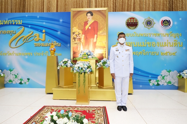 เมื่อวันที่ 10 พฤศจิกายน 2564 เวลา 09.30 น. ที่อาคารอเนกประสงค์ วัดบ่อสามแสน ต.หนองปลิง อ.เมือง จ.กำแพงเพชร นายเชาวลิตร แสงอุทัย ผู้ว่าราชการจังหวัดกำแพงเพชร เป็นประธานมอบเงินพระราชทานขวัญถุงกองทุนแม่ของแผ่นดิน จำนวน 11 หมู่บ้าน มอบพระฉายาลักษณ์สมเด็จพระนางเจ้าสิริกิติ์ พระบรมราชินีนาถ พระบรมราชชนนีพันปีหลวง และมอบใบประกาศเกียรติคุณแก่หมู่บ้านกองทุนแม่ของแผ่นดินดีเด่นระดับจังหวัด ด้วยสมเด็จพระนางเจ้า สิริกิติ์ พระบรมราชินีนาถ พระบรมราชชะนี พันปีหลวง ได้พระราชทานพระราชทรัพย์ส่วนพระองค์ผ่านเลขาธิการคณะกรรมป้องกันและปราบปรามยาเสพติด