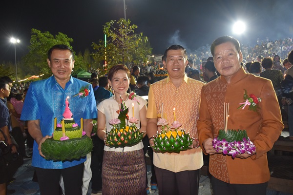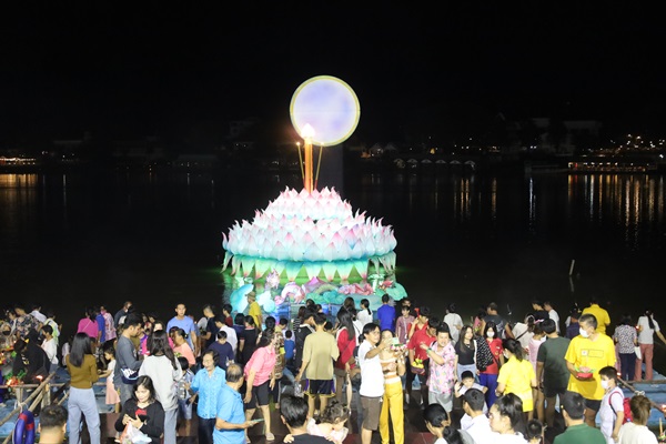 จากนั้น นายปริญญา เหล่าวชิรวงศ์ เลขานุการนายกเทศมนตรีเมืองกำแพงเพชร เป็นผู้นำกล่าว พิธีถวายกระทงลอยประทีป พร้อมผู้ร่วมพิธี โดย ผู้ว่าราชการจังหวัดกำแพงเพชร พร้อมด้วยนายกเหล่ากาชาดจังหวัดกำแพงเพชร นายกเทศมนตรีเมืองกำแพงเพชร และแขกผู้มีเกียรติ ได้ร่วมกันเดินทางไปยังแพท่าน้ำเพื่อลอยกระทง และร่วมรับชมการประกวดนางนพมาศ และนพมาศจำแลง โดยผู้ที่ได้รับตำแหน่งนางนพมาศ ได้แก่ หมายเลข 3 นางสาววรรณภร สากะแสร์ น้องเหม่ยหมิว และนางนพมาศจำแลง ได้แก่ หมายเลข 6 นายกรจิรัสย์ ทรงงาม น้องฟาร์มเฮ้าส์
