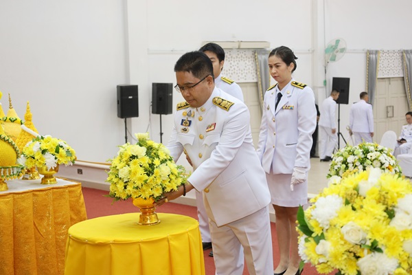 จากนั้นเวลา 09.30 น. ที่หอประชุมใหญ่ศูนย์ราชการจังหวัดกำแพงเพชร นายชาธิป รุจนเสรี ผู้ว่าราชการจังหวัดกำแพงเพชร เป็นประธานในพิธีถวายพุ่มดอกไม้สด ดอกไม้ เบื้องหน้าพระบรมฉายาลักษณ์ พระบาทสมเด็จพระบรมชนกาธิเบศร มหาภูมิพลอดุลยเดชมหาราช บรมนาถบพิตร วันชาติ และวันพ่อแห่งชาติ 5 ธันวาคม 2566 จำนวน 48 หน่วยงาน พร้อมด้วยนางสาวสุพัตรา คล้ายทิม, นายบุญช่วย หอมยามเย็น รองผู้ว่าราชการจังหวัดกำแพงเพชร นางกาญจนี รุจนเสรี นายกเหล่ากาชาดจังหวัดกำแพงเพชร ข้าราชการพลเรือน ตุลาการ ทหาร ตำรวจ อัยการ พนักงานรัฐวิสาหกิจ สถาบันการศึกษา ผู้บริหารสมาชิกองค์กรปกครองส่วนท้องถิ่น ชมรมแม่บ้านมหาดไทย และหน่วยงานที่เกี่ยวข้อง เข้าร่วมในพิธี